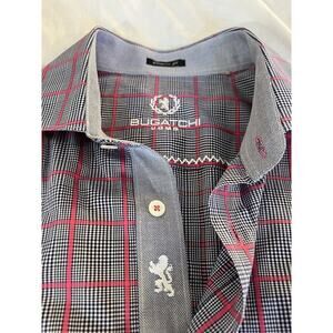 Bugatchi Uomo Mens Classic Fit Shirt Size XL Preppy Button Up Flip Sleeve Plaid