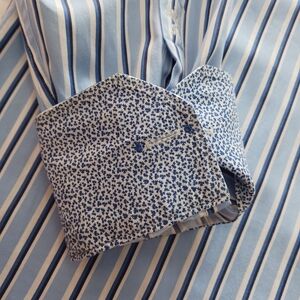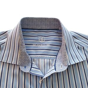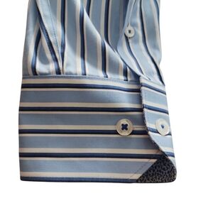 Bugatchi Uomo Mens Dress Shirt Striped Blue White Size 16.5/ 32-33