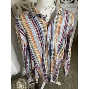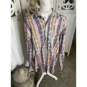 Bugatchi Uomo Mens Long Sleeve Button Down Shirt-Size XL Colorful Striped
