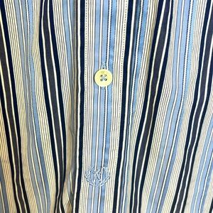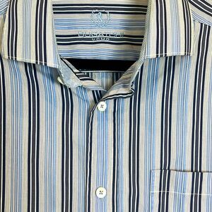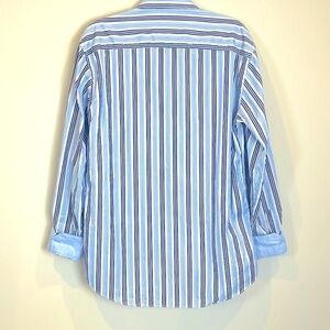 Bugatchi Uomo Men’s Medium shaped fit striped blue white shirt button down cuff