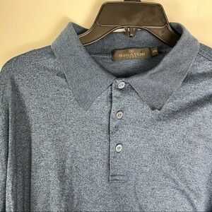 Bugatchi Uomo Mens Polo Shirt Blue Heathered Long Sleeve 100% Cotton XXL