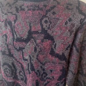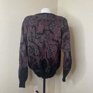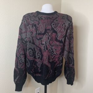 Bugatchi Uomo Men’s Pullover Sweater Abstract Black Purple Wool Blend Sz S Vtg