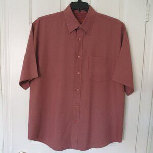 Bugatchi Uomo Mens S/S Wine Red Hidden Button-down Collar Shirt. Size 16" Collar or Large. Armpit-to-armpit 25", Length 31". 60/40% Rayon/Polyester in Wine Red Mini-check. New w/o Tags, suitable for gifting.