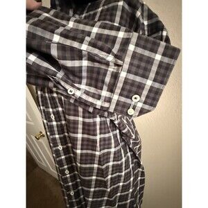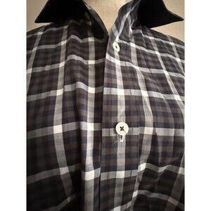 This Bugatchi Uomo Men's Shaped Fit Long Sleeve Button Front Shirt in size Small is a stylish and versatile addition to any man's wardrobe. Made from 100% cotton with a plaid and check pattern