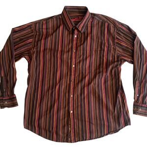 Bugatchi Uomo Men's Size XL Button Down Striped Long Sleeve Embroidered Shirt