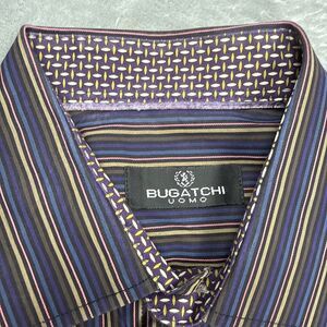 Bugatchi Uomo Men’s XL Multicolor Striped Dress Shirt Long Sleeve 100% Cotton