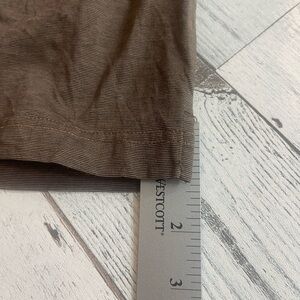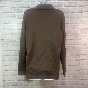 Brownish gold, mock turtleneck, long sleeves, small slits on sides,100% mercerized cotton, colors may vary due to lighting, good used condition, small