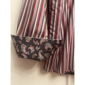 Bugatchi Uomo Multi Brown Red Blue Stripe Button Down Shirt Flip Cuff Paisley L