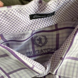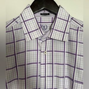 Bugatchi Uomo Purple Plaid Long Sleeve Men's Dress Shirt Size Large Classic Fit