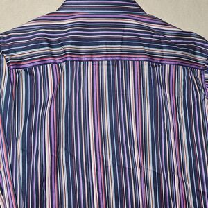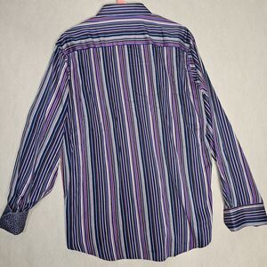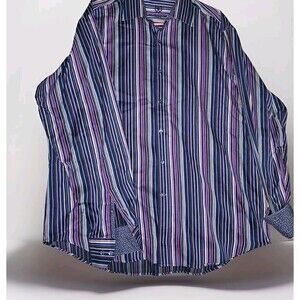 Bugatchi Uomo Purple Striped Dress Shirt Mens XXL Long Sleeve ButtonUp Flip Cuff