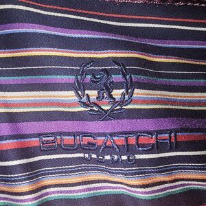 Elevate your wardrobe with this Bugatchi Uomo dress shirt in size XXL. The long sleeve button-up shirt features a stylish striped pattern in shades of purple, perfect for any occasion from casual to formal. The collared neckline and button closure add a touch of sophistication, while the pockets offer practicality.