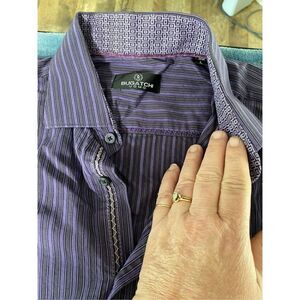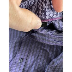 Bugatchi Uomo Purple Striped Pocket Mens Long Sleeve Button Up Shirt Size Large