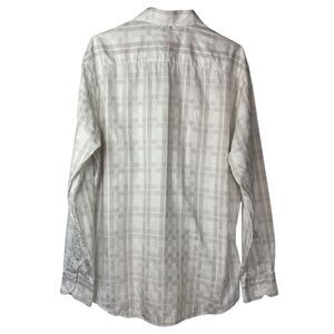 Bugatchi Uomo Shaped Fit Gray White Plaid Button Down Shirt Mens L Long Sleeve