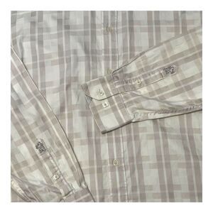 Bugatchi Uomo Shaped Fit Gray White Plaid Button Down Shirt Mens Large Long Sleeve