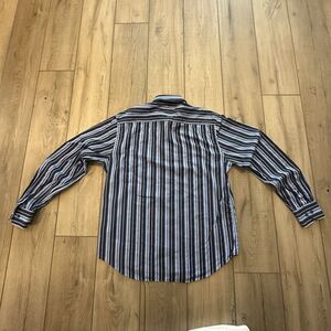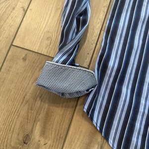 Bugatchi Uomo Shaped Fit Shirt Mens Large Striped Flip Cuff Button Long Sleeve