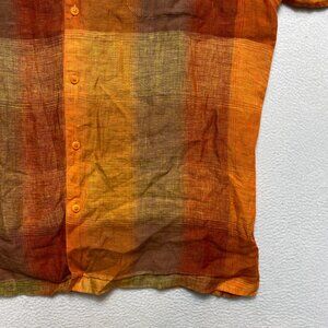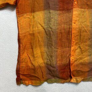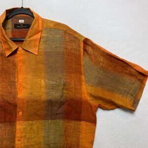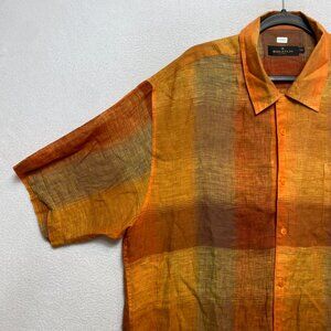 Bugatchi Uomo Shirt Mens 2XL Red Short Sleeve Ombre 100% Linen Button Up