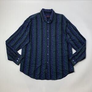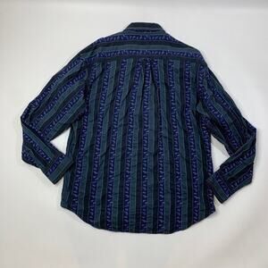 Bugatchi Uomo Shirt Mens L Large Cotton Paisley Striped Cotton Long Sleeve Dress