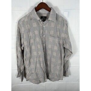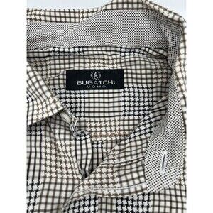 Bugatchi Uomo Shirt Mens L Tan Geometric Classic Fit Flip Cuff Button Up