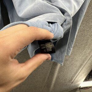 Shirt shows light overall wash wear and wrinkling from storage. No obvious stains, holes, or damage; buttons and seams intact.