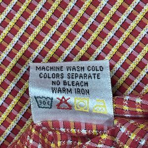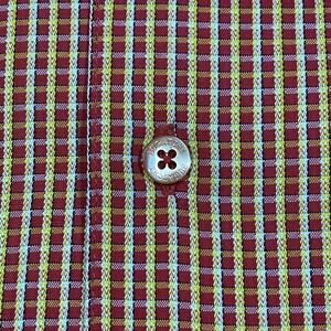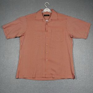 Bugatchi Uomo Shirt Mens Medium Red Orange Check Stretch Button Up Short Sleeve
