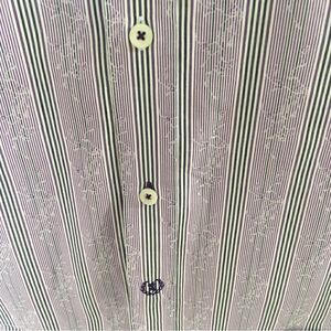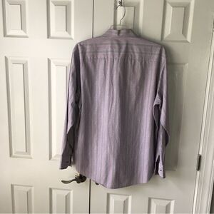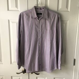 Bugatchi Uomo Striped Button Down Shirt, Size XL Lavender,Purple and White, Button Down Front, Point Collar, Logo On Hem,Button Cuffs, Chest Pocket, See photos for measurements and details