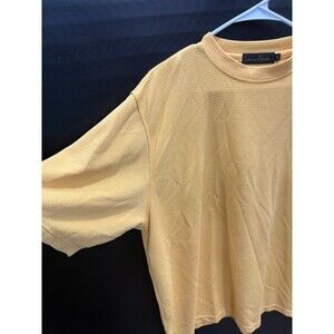 Bugatchi Uomo T-Shirt Mens L Yellow Ribbed Short Sleeve Modal Rayon Polyester