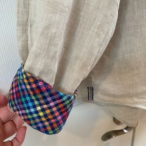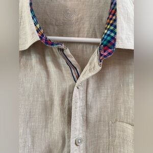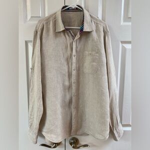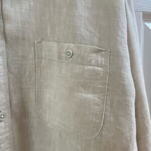 Bugatchi Uomo Tan Linen Button Up Long Sleeves with Roll Tabs Size XL?