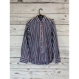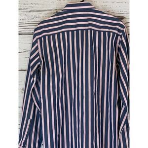 Bugatchi Uomo shaped fit blue pink pinstripes long sleeves button shirt Size L