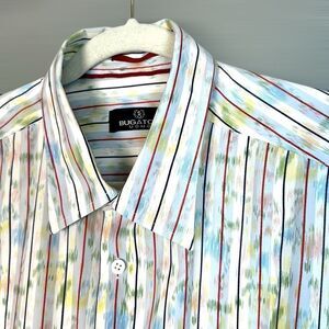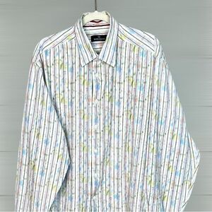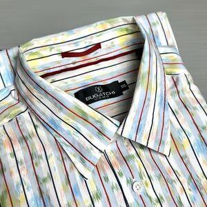 Bugatchi Uomo Cotton Shirt Button Down Striped White Multicolor Long Sleeve XXL