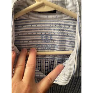 Bugatchi luxury designer shirt Button up Mens blue white long sleeve embroidered