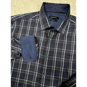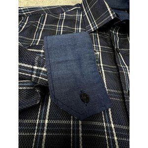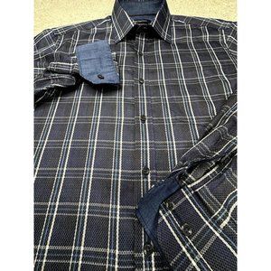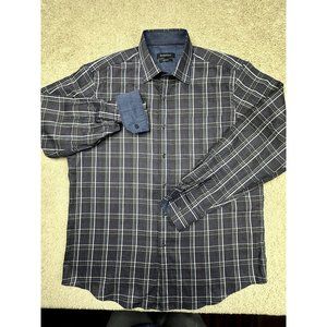 Bugatchi men's plaid long sleeve button down shirt blue and white Size Medium