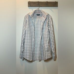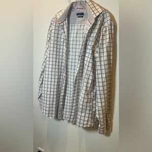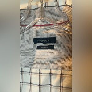 Bugatchi men’s size L White, Blue and tan Checkered Button-Up Shirt
