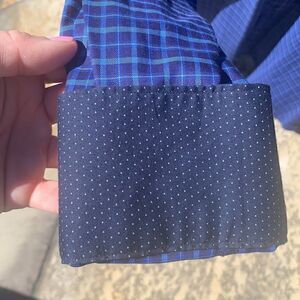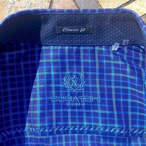 Bugatchi Men’s Small Gorgeous Blue Plaid Long Sleeve Button-down Soft Shirt with Lightweight Material! Unique Cuffs and sinner Neckline make this beauty stand out!