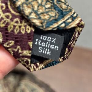 Bugatti Men's Green Red Paisley Patterned Italian Silk Necktie