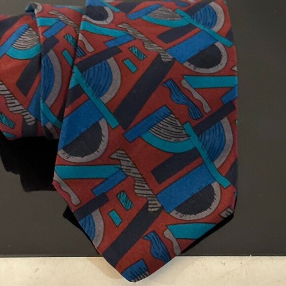 Than you for looking at this Bugatti Silk Tie Red Abstract Blue