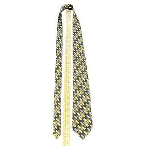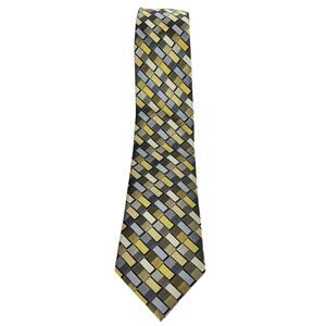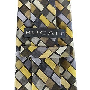 Bugatti Tie Men OS Blue Gray Tan (Gold Tone) 100% Silk Check Pattern Classic Point Necktie