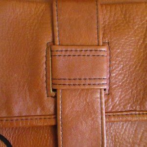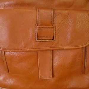 Bugatti large leather shoulder / messenger bag. Large. Caramel brown. Adjustable strap. 1 outside pocket.