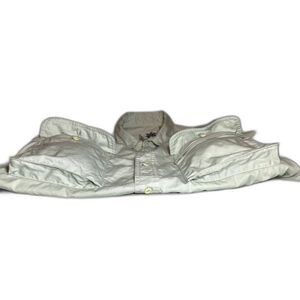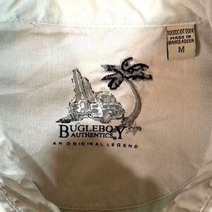 Bugle Boy Authentic An Original Legend Men's Sz M Lt Green 100% Cotton, three pockets on front of shirt, one hidden zipper pocket over the top of an expanding chest pocket (see photo). Diagram of measurements can be seen in photos. Garment has been laundered and hung dry.