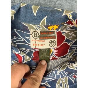 Bugle Boy Authentics Men’s Large Blue Red Floral Short Sleeve Shirt Excellent