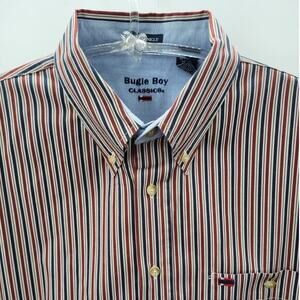 Bugle Boy Classics Vintage Blue Red Striped Short Sleeve Button Up Men's Shirt