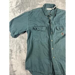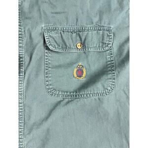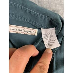 Bugle Boy Company Men's Shirt Large Teal Green Cotton Vintage Crest Logo Good
