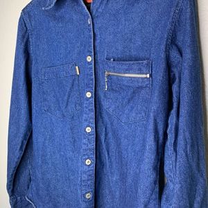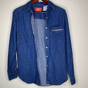 Bugle Boy Company's Women's Blue Vintage Button-Down Long-Sleeve Denim Shirt Size M