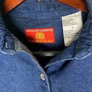 Bugle Boy Company's Women's Blue Vintage Button-Down Long-Sleeve Denim Shirt Siz