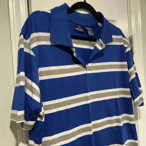 Bugle Boy Men’s Blue White Stripe Short Sleeve cotton Blend Polo Shirt Size L