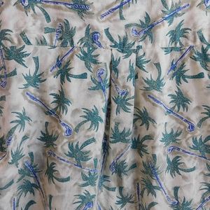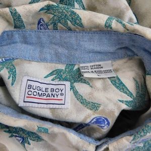 Bugle Boy Mens Hawaiian Palm Trees Shirt Large Blue Short Sleeve Button Front