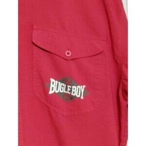Bugle Boy Original Vintage Men's Size Large Red ~ Short Sleeve. Measures 24" across and 31" in length. Has small pinhole sized hole under one of the buttons that doesn't go all the way through the shirt (see pics)