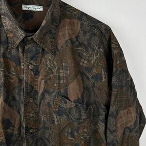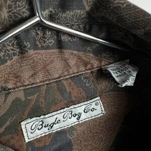 For sale is a Bugle Boy shirt in a vibrant brown pattern, available in Size Large. This retro piece embodies the Y2K urban streetwear vibe, perfect for adding a nostalgic touch to your wardrobe.