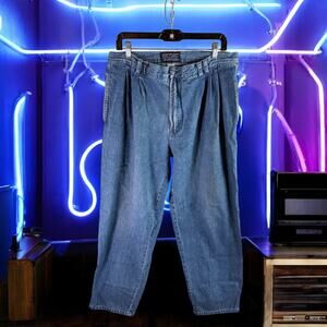 Bugle Boy VTG Men's 38x30 Medium Blue Wash Pleated Front Tapered Leg Jeans