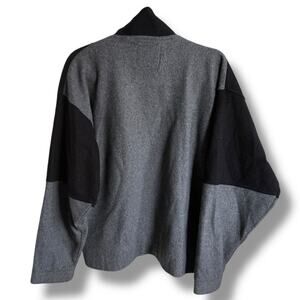 Experience warmth and style with this Bugle Boy sweatshirt, featuring a sleek black and gray color block design. The quarter-zip pullover style and high collar offer a modern touch, making it perfect for casual outings in cooler weather.