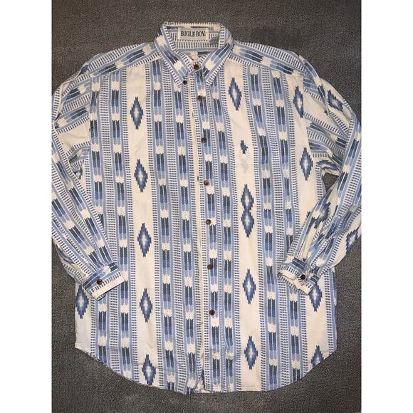 Bugle boy Vintage 90s Aztec western long sleeve button cotton Shirt size med